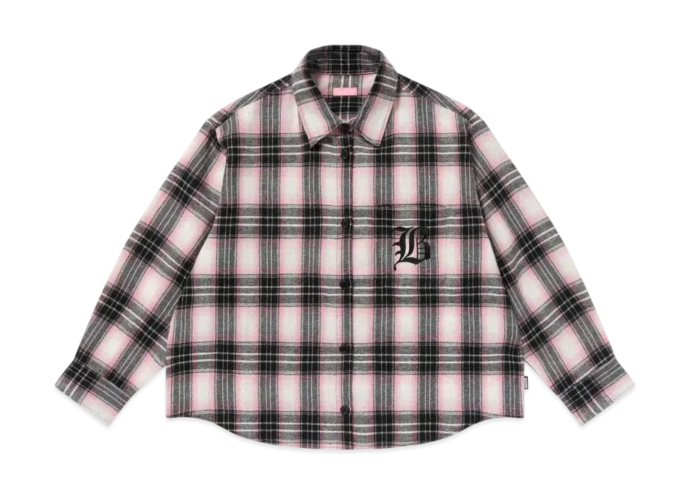 BlackEyePatch Low Script Loose Flannel Shirt "Pink"