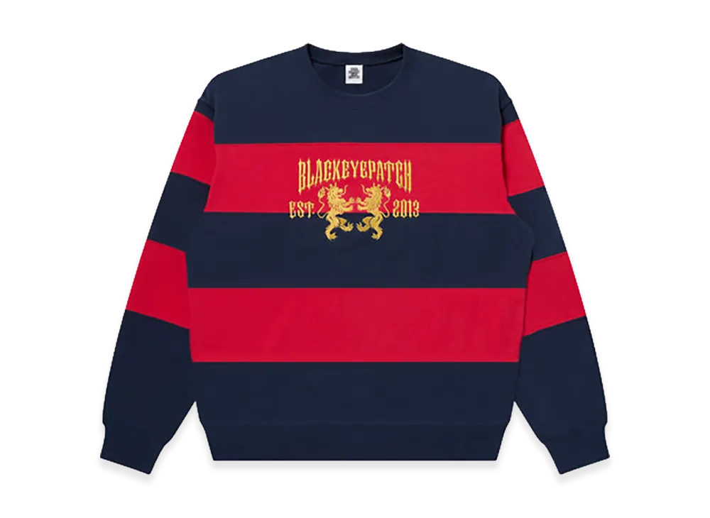 BlackEyePatch Heraldic College Striped Crew Sweat "Navy/Red"