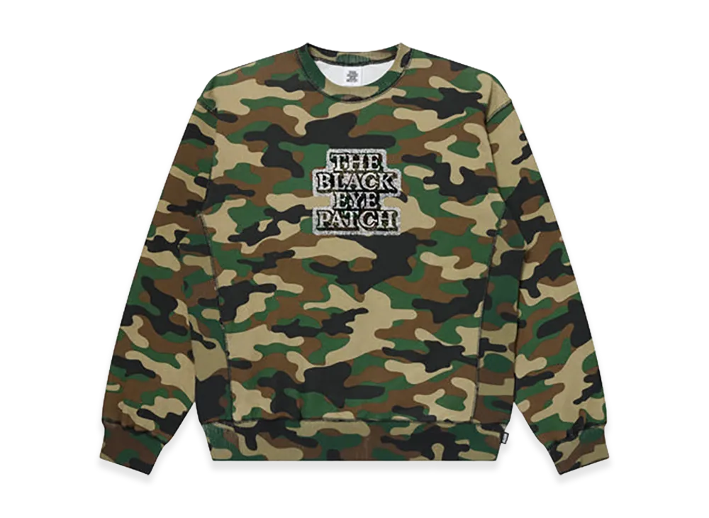BlackEyePatch Rhinestoned OG Label Crew Sweat "Woodland Camo"