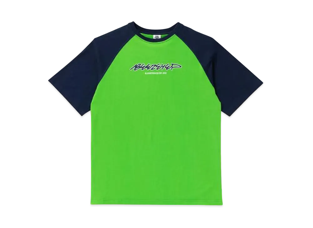 BlackEyePatch BEEZ-EYE-P SCRIPT LOGO RAGLAN TEE "Navy/Green"