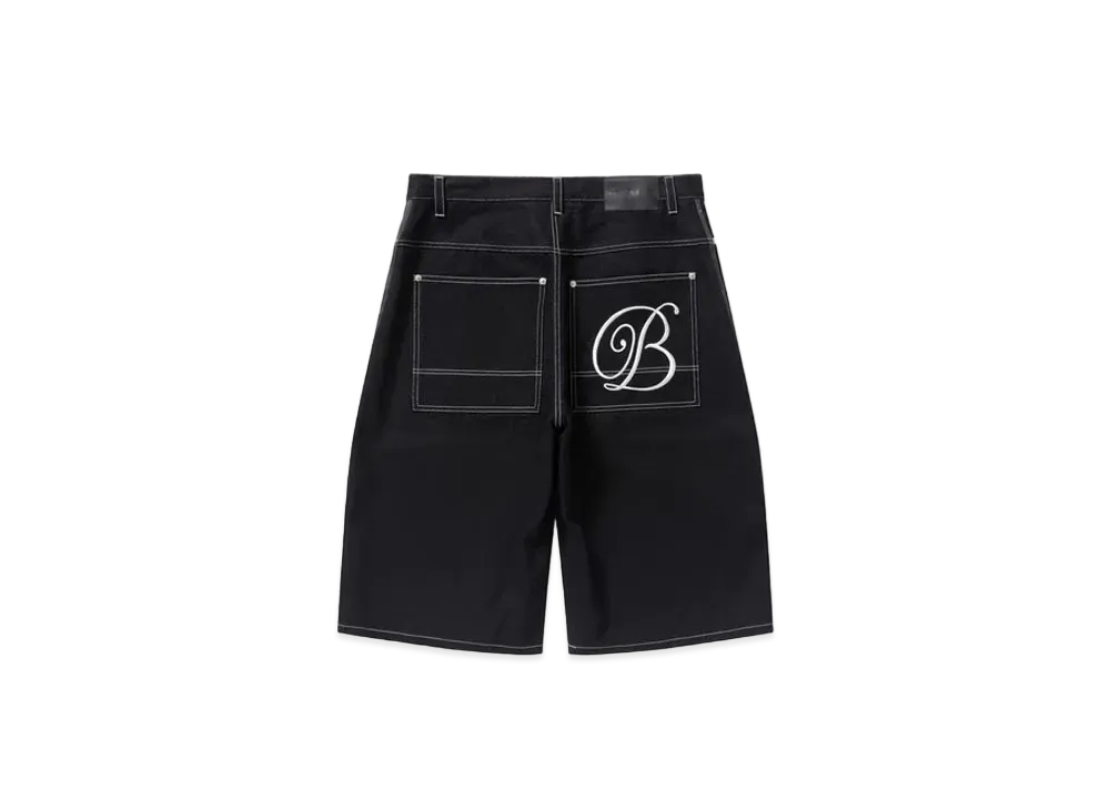 Black Eye Patch B Emblem Baggy Denim Shorts "Black"