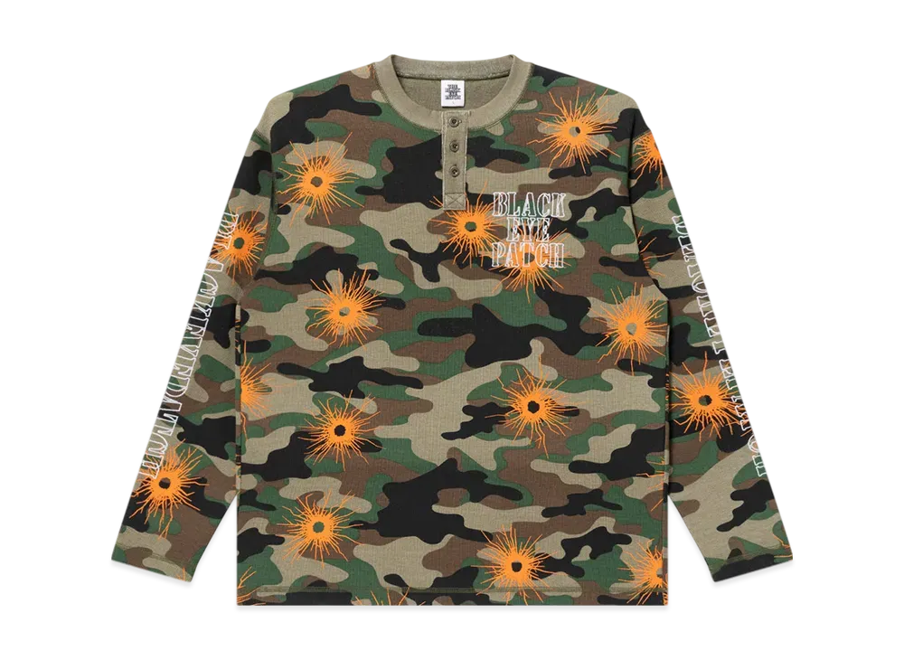 BlackEyePatch Gunshot Stencil Henley Neck L/S Thermal Woodland "Camo"