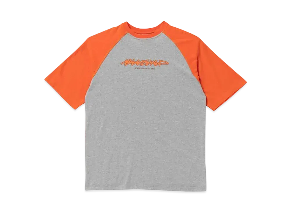 BlackEyePatch BEEZ-EYE-P SCRIPT LOGO RAGLAN TEE "Orange/H.Gray"