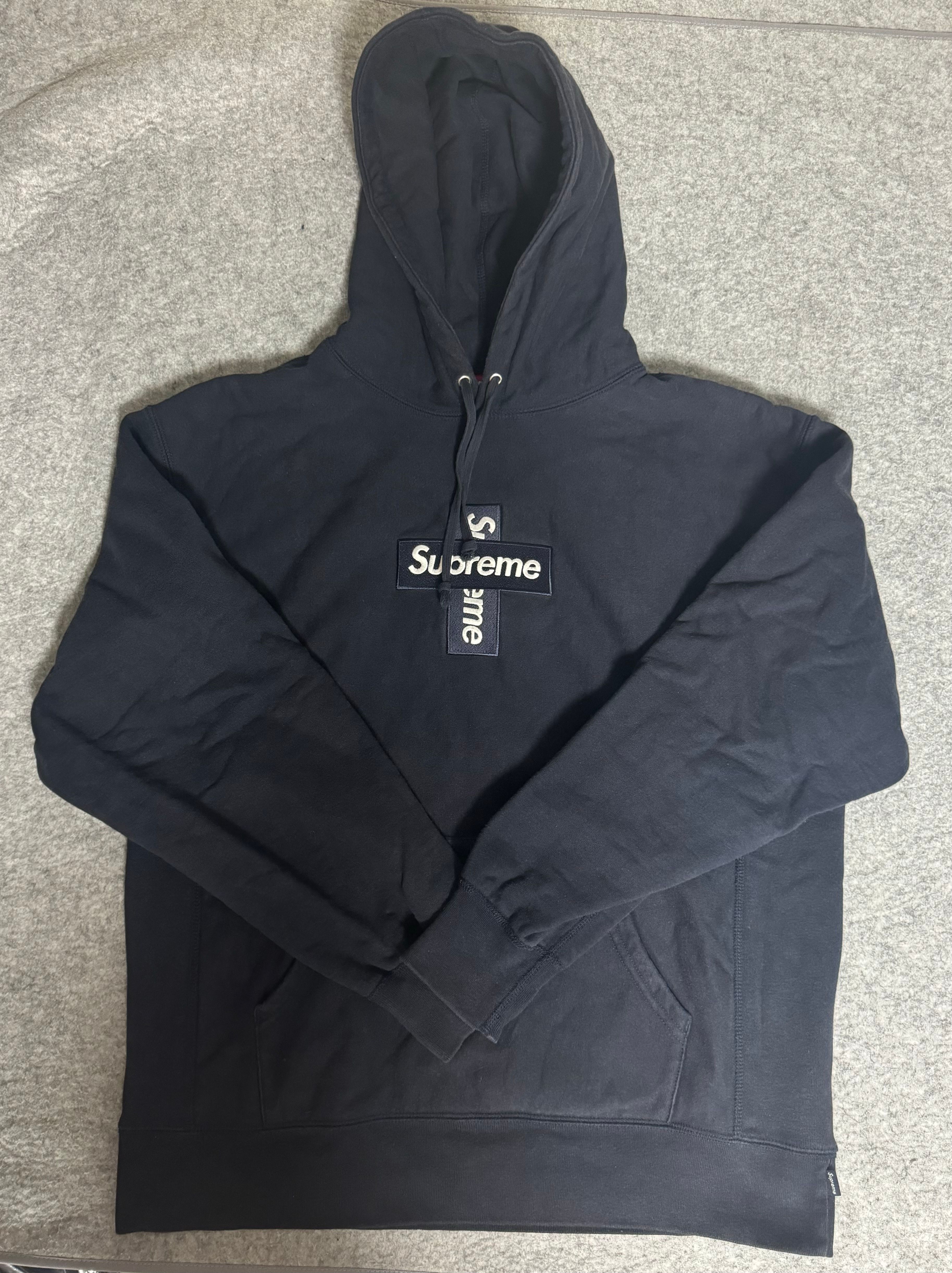 Supreme Cross Box Logo Hooded Sweatshirt "Navy"