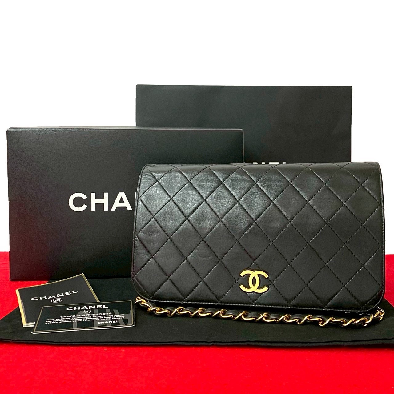 CHANEL シャネル マトラッセ25 ココマーク チェーンショルダーバッグ 1番台シリアル ラムスキン レザー ワンショルダーバッグ セミショルダーバッグ ゴールド金具 ヴィンテージ アンティーク Bランク 鑑定済 中古 シャネルバッグ【高騰中!!】