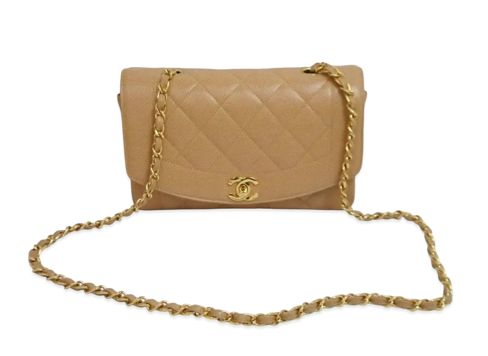 CHANEL Matelasse Diana Flap 25 Chain Shoulder Caviarskin "Beige"