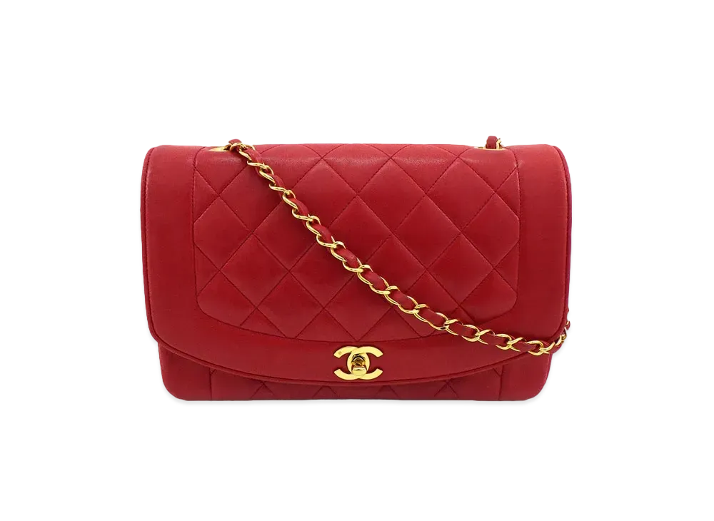 CHANEL Matelasse Diana Flap 25 Chain Shoulder Lambskin "Red"