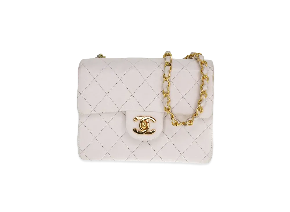 CHANEL Mini Matelasse Lambskin "White/Gold"