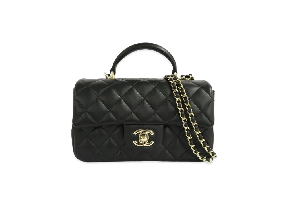 CHANEL Matelasse Metal Handle Chain Bag Lambskin "Black/Gold"