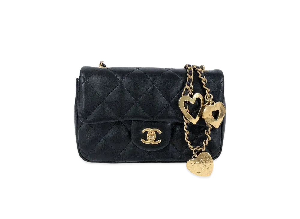 CHANEL Mini Matelasse Heart Charm Chain Shoulder Bag Lambskin "Black/Gold"