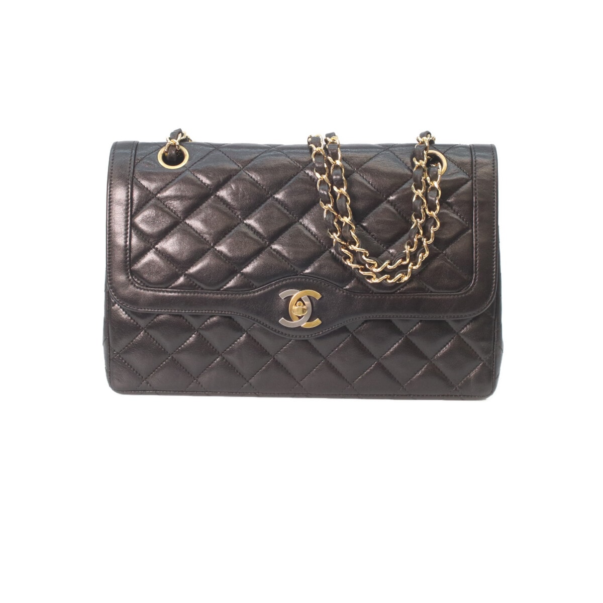 シャネル 2番 パリ限定 黒 ラムスキン ダブルフラップ マトラッセ26