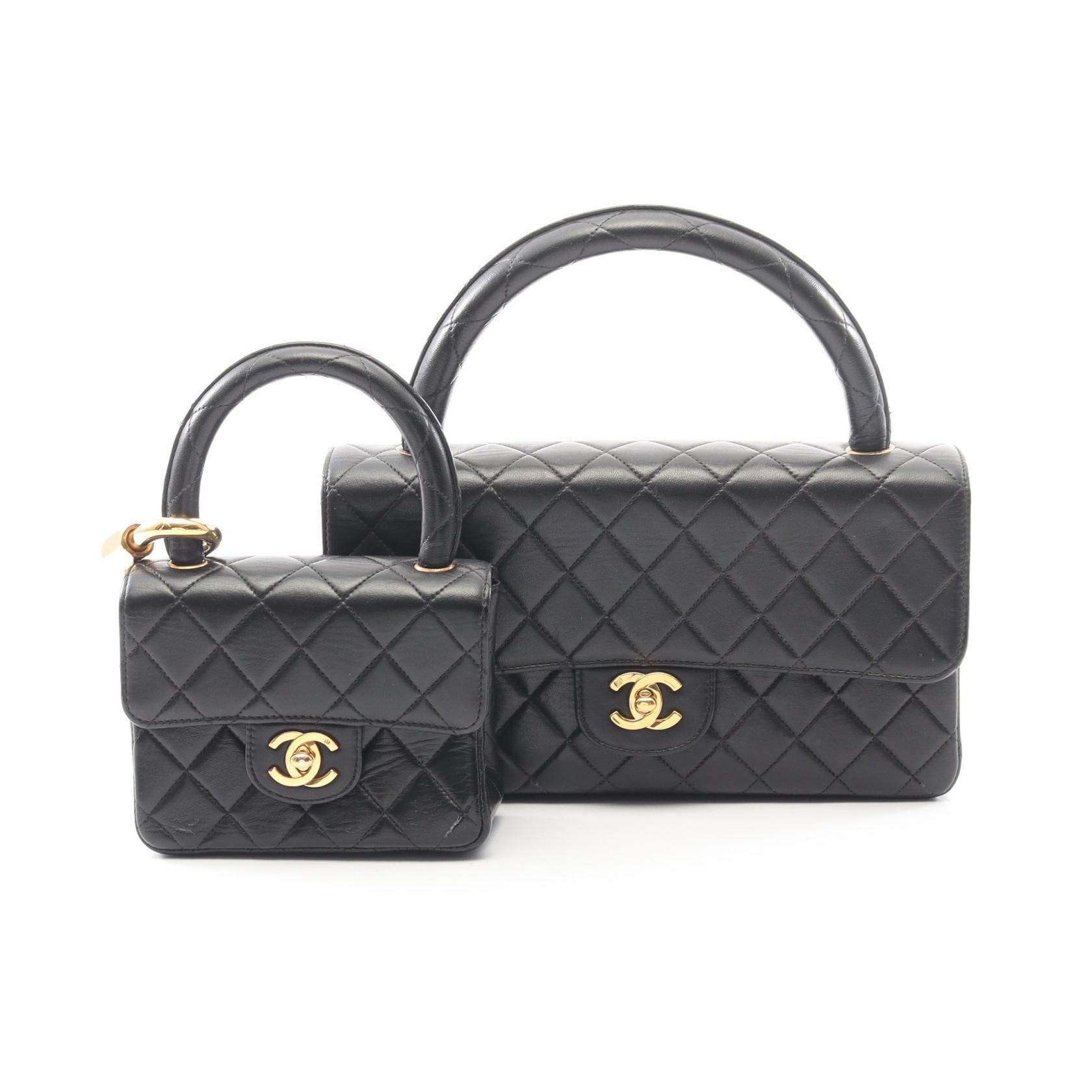 シャネル CHANEL マトラッセ 親子バッグ ハンドバッグ バッグ ラムスキン(羊革) レディース ブラック系 【中古】