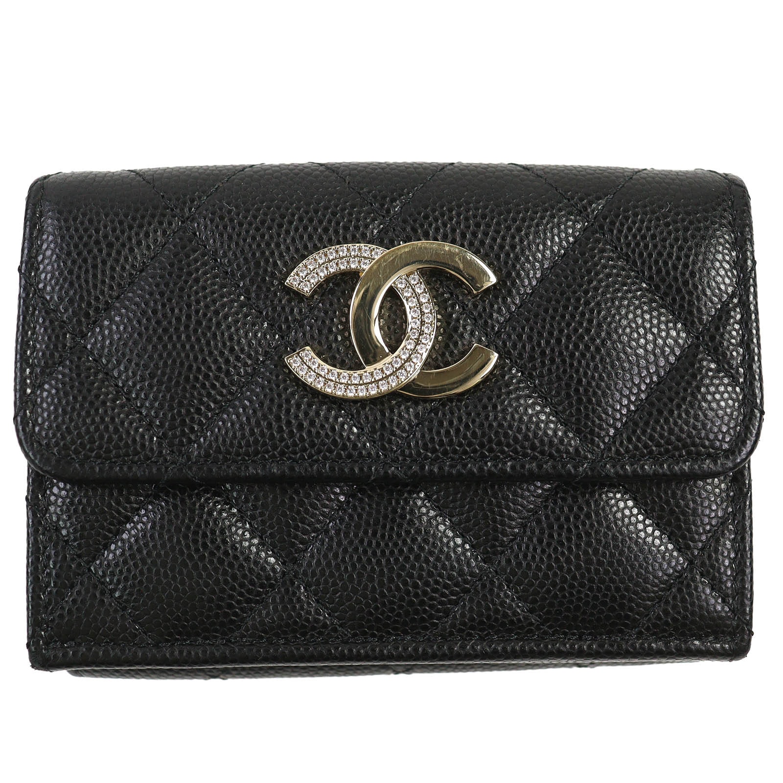 シャネル CHANEL マトラッセ コンパクトウォレット AP4248B1821294305 二つ折り財布 キャビアスキン ブラック ゴールド金具 レディース【中古】【Aランク】