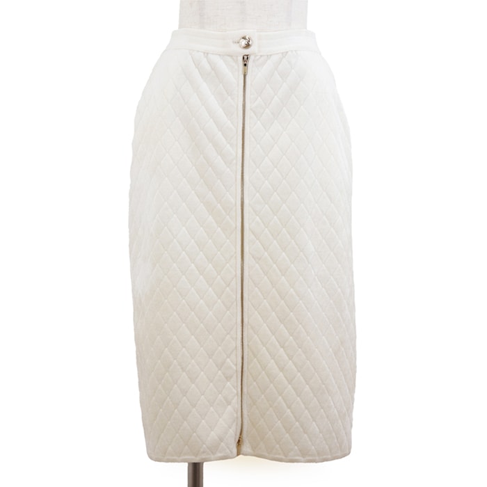 美品 シャネル P65628 マトラッセ ダイヤキルティング センタージップ スカート レディース アイボリー 36 CHANEL