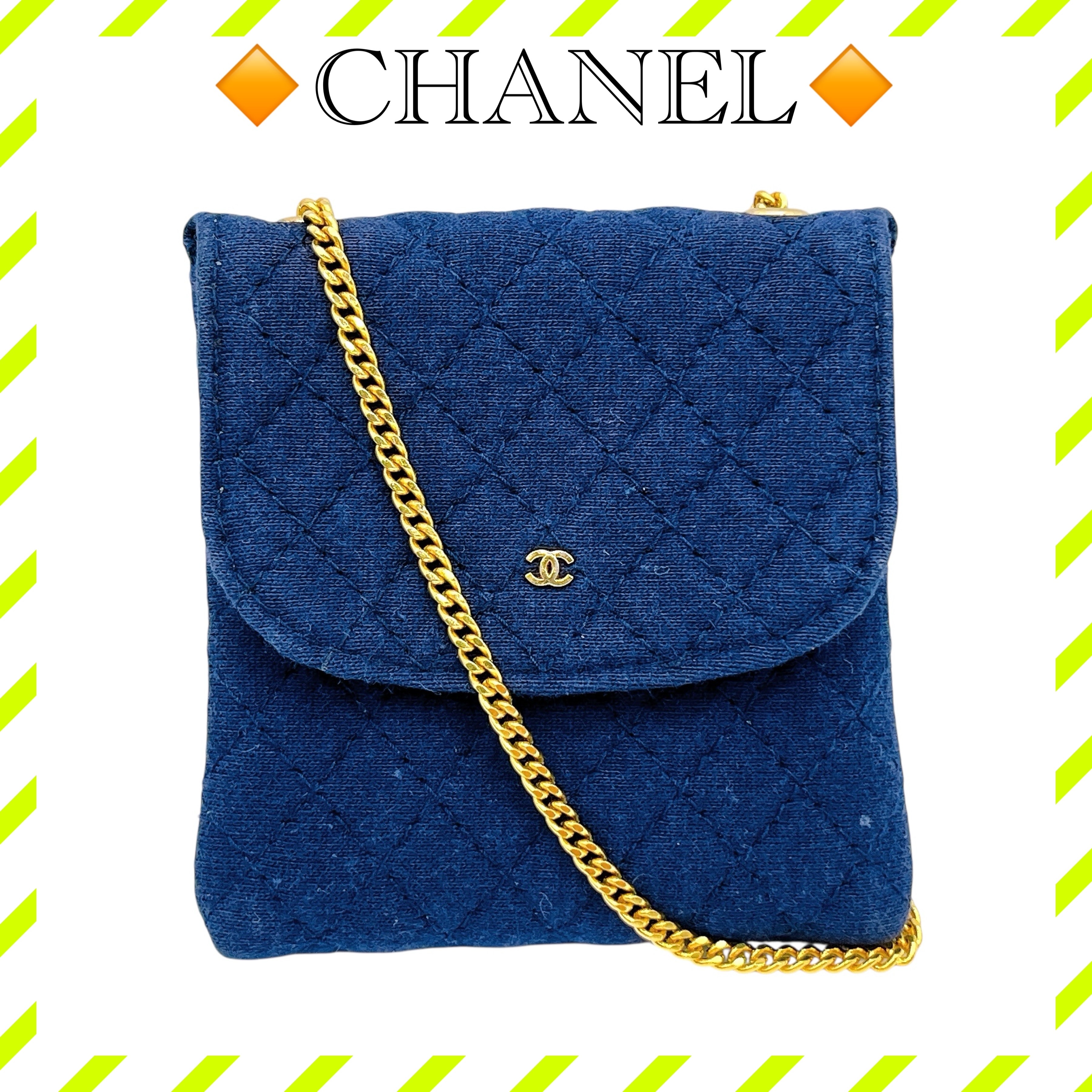 美品 シャネル コットン マトラッセ チェーン ミニポーチ ネイビー レディース