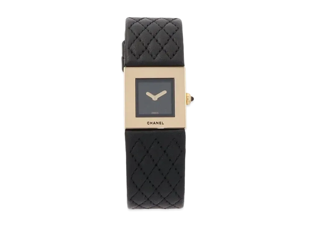 CHANEL Metalasse 19mm Yellow Gold and Leather "Black"