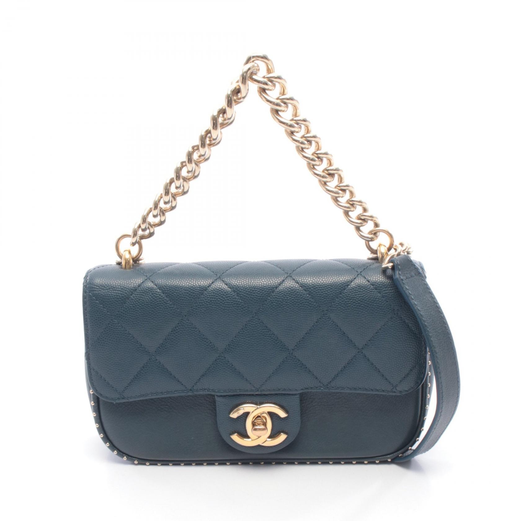 シャネル CHANEL マトラッセ ショルダーバッグ バッグ レザー グレインドカーフレザー レディース ネイビー系 【中古】
