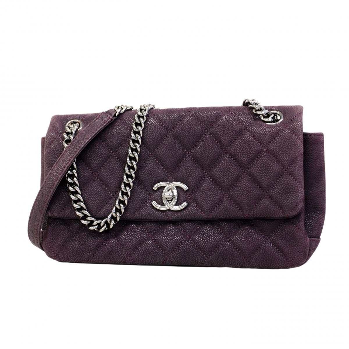 ★最終価格★SALE【6cb2172-k】シャネル ショルダーバッグ マトラッセ Wチェーン キャビアスキン パープル シルバー金具【中古】レディース
