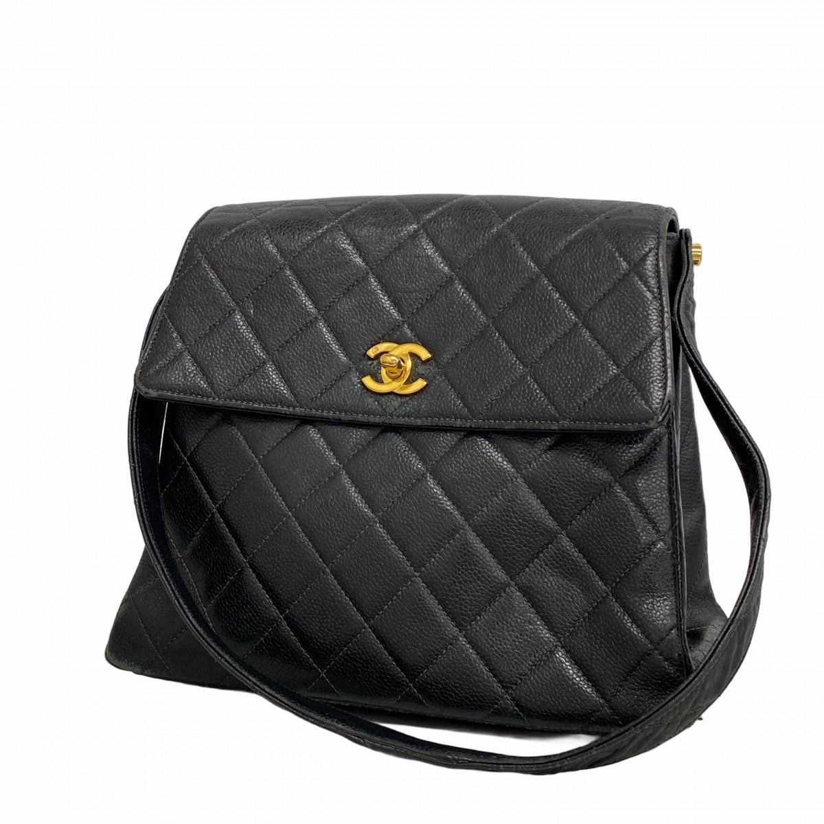★最終価格【6cb2074】シャネル ショルダーバッグ マトラッセ キャビアスキン ブラック ゴールド金具【中古】レディース