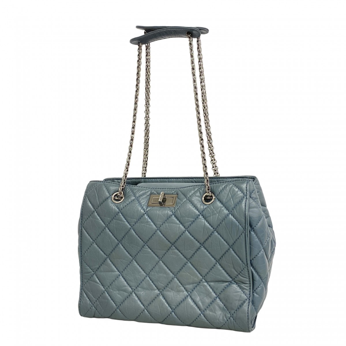 ★最終価格【6cb2155-k】シャネル ショルダーバッグ 2.55/マトラッセ チェーンショルダー カーフスキン グレー ブルー シルバー金具【中古】レディース