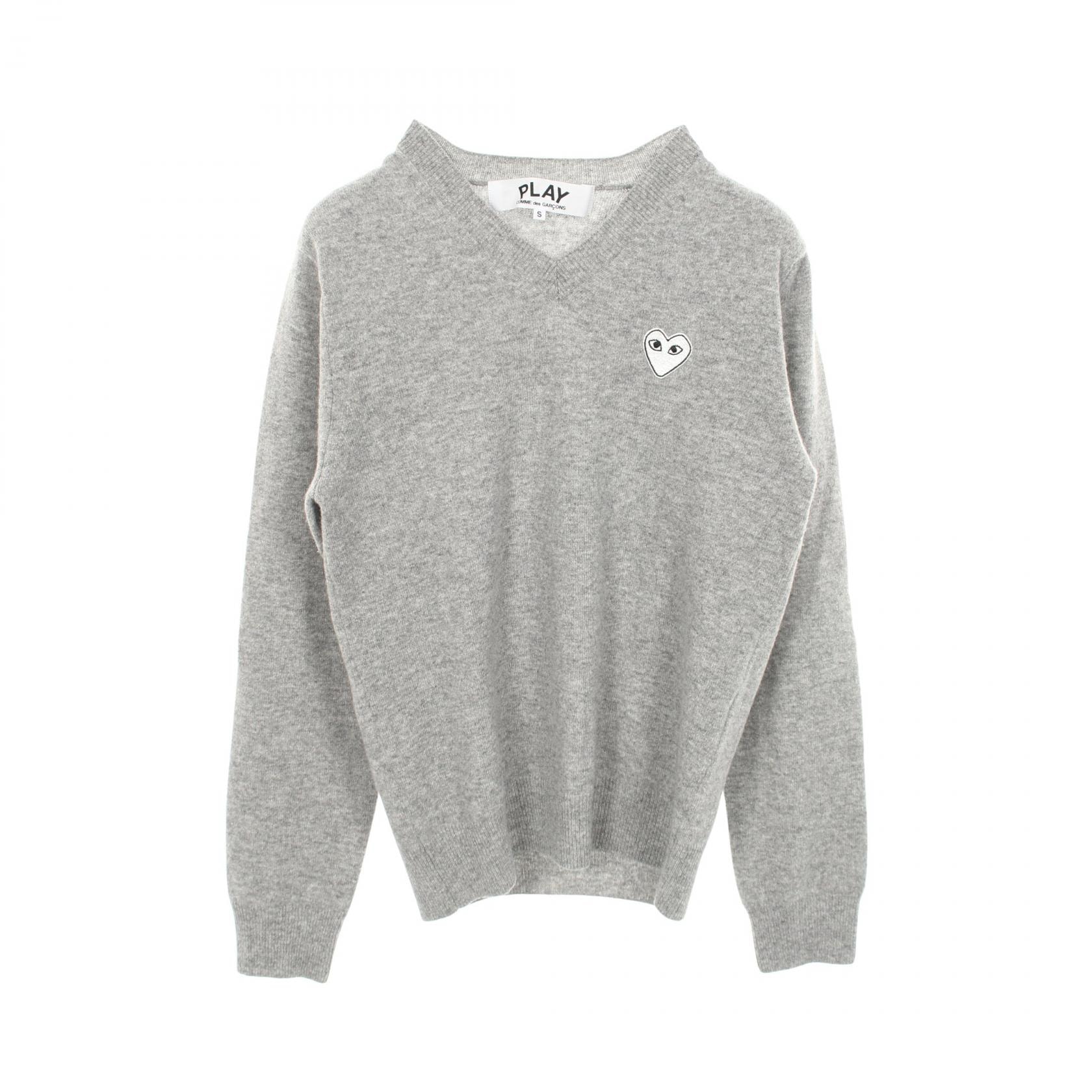 プレイコムデギャルソン PLAY COMME des GARCONS ハートパッチ Vネック ニット 衣料品 トップス ウール メンズ グレー系 【中古】