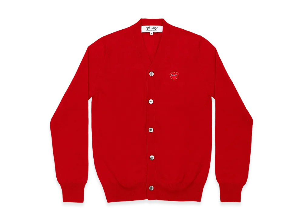 COMME des GARCONS PLAY Unisex V-Neck Cardigan with Emblem x Rhinestone "Red"