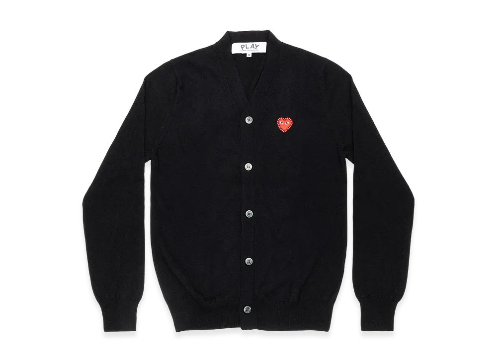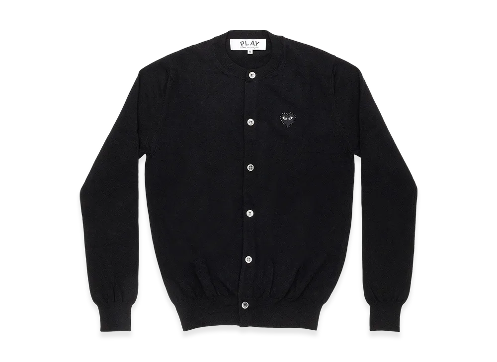 COMME des GARCONS PLAY Unisex V-Neck Cardigan with Emblem x Rhinestone "Black"