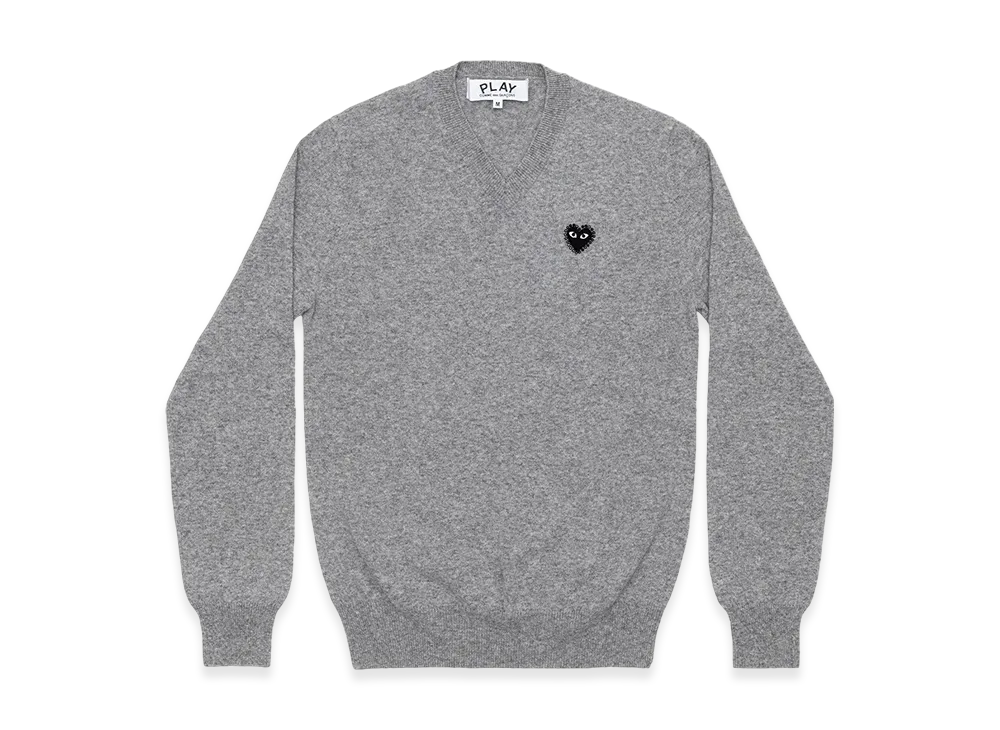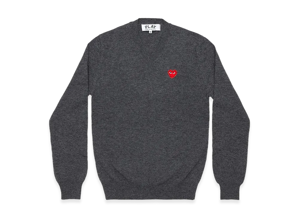 COMME des GARCONS PLAY Unisex V-Neck Sweater with Emblem x Rhinestone "Medium Gray"