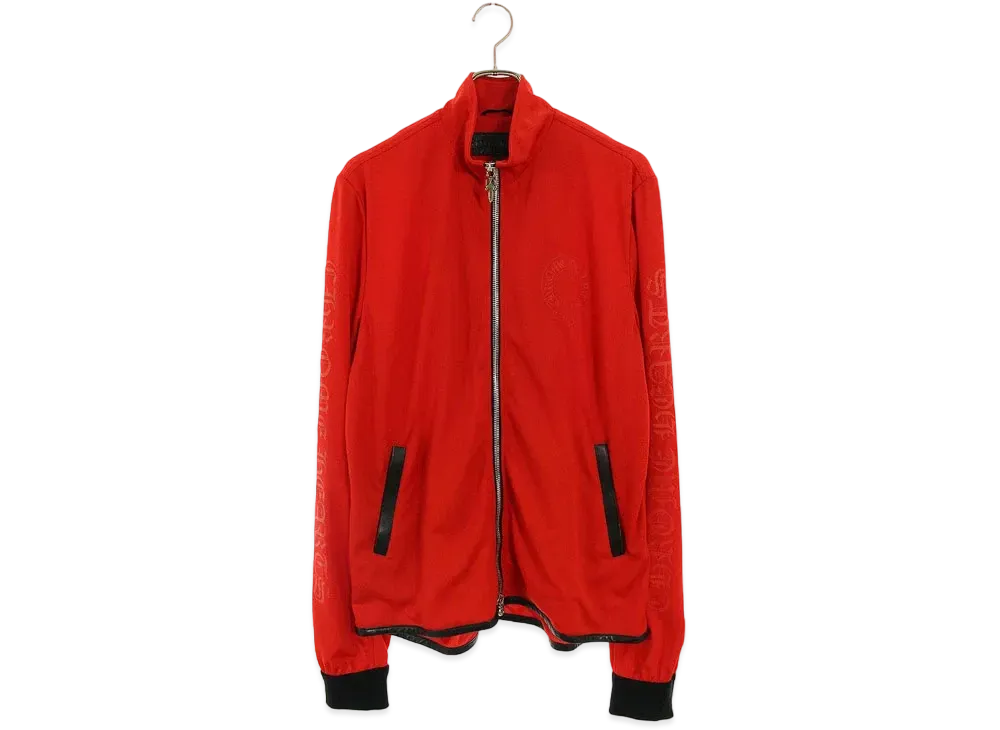 Chrome Hearts Track Jacket Leather Switch Cashmere Mixed Dagger Zip Jersey Brouson "Red"