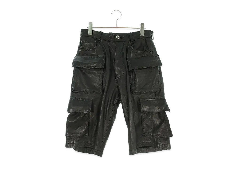 Chrome Hearts Cross Ball Button Fatigue Leather Half Pants "Black"