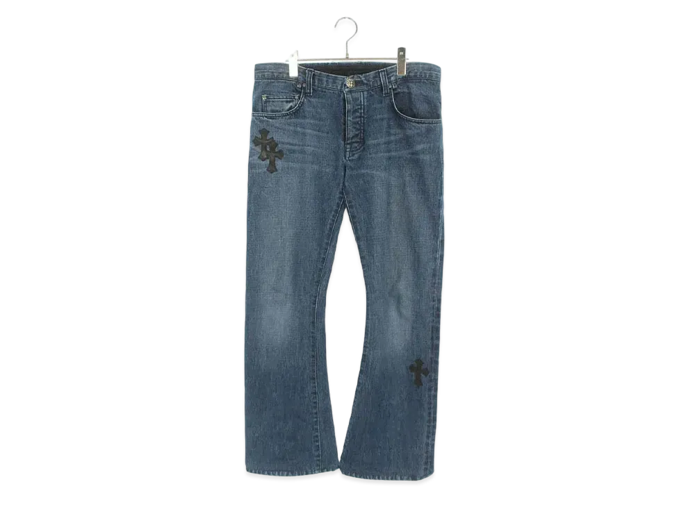Chrome Hearts Leather Cemetery Cross Patch Custom Denim Pants