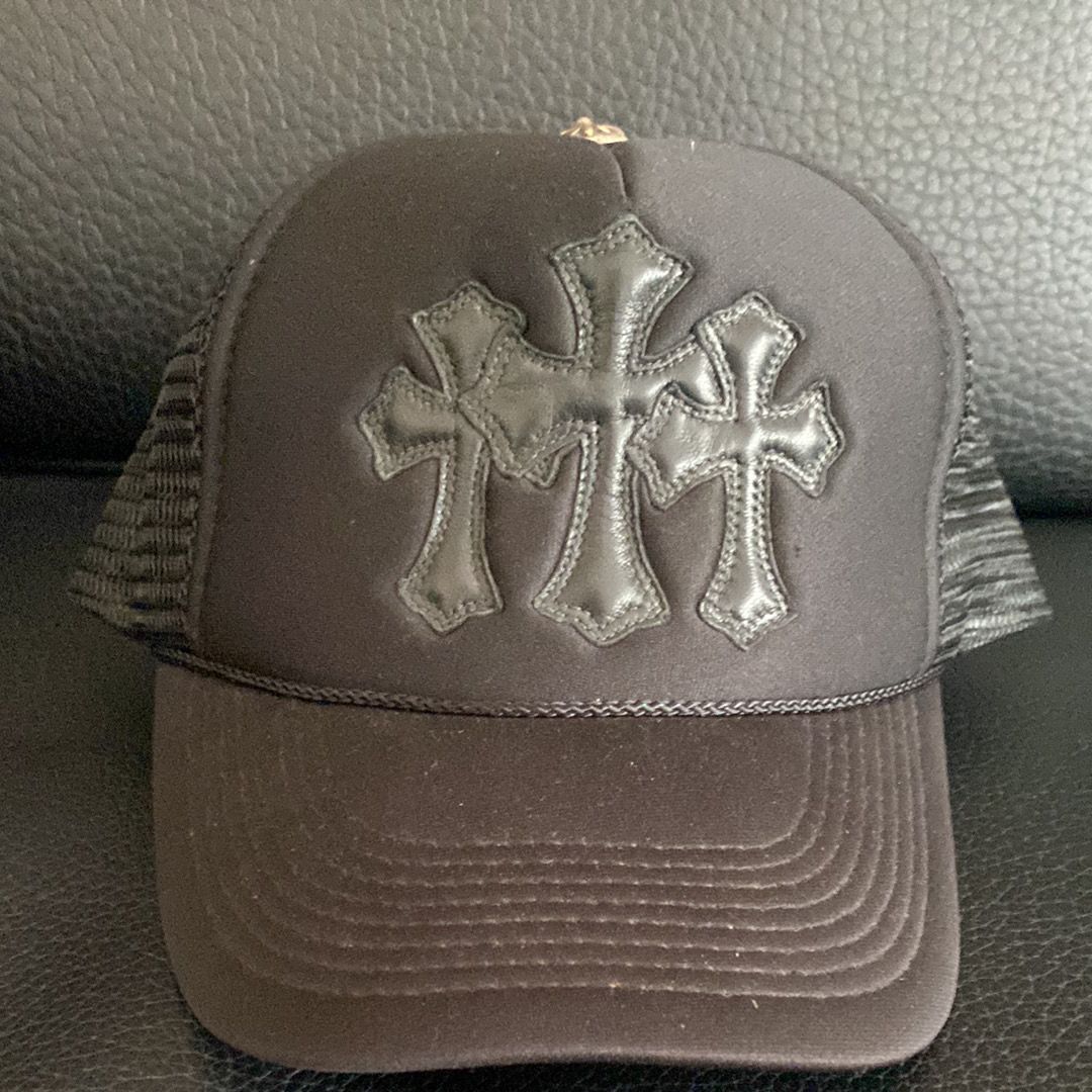Chrome Hearts Trucker Cap Cross Leather Patch Cross Ball Mesh "Black"