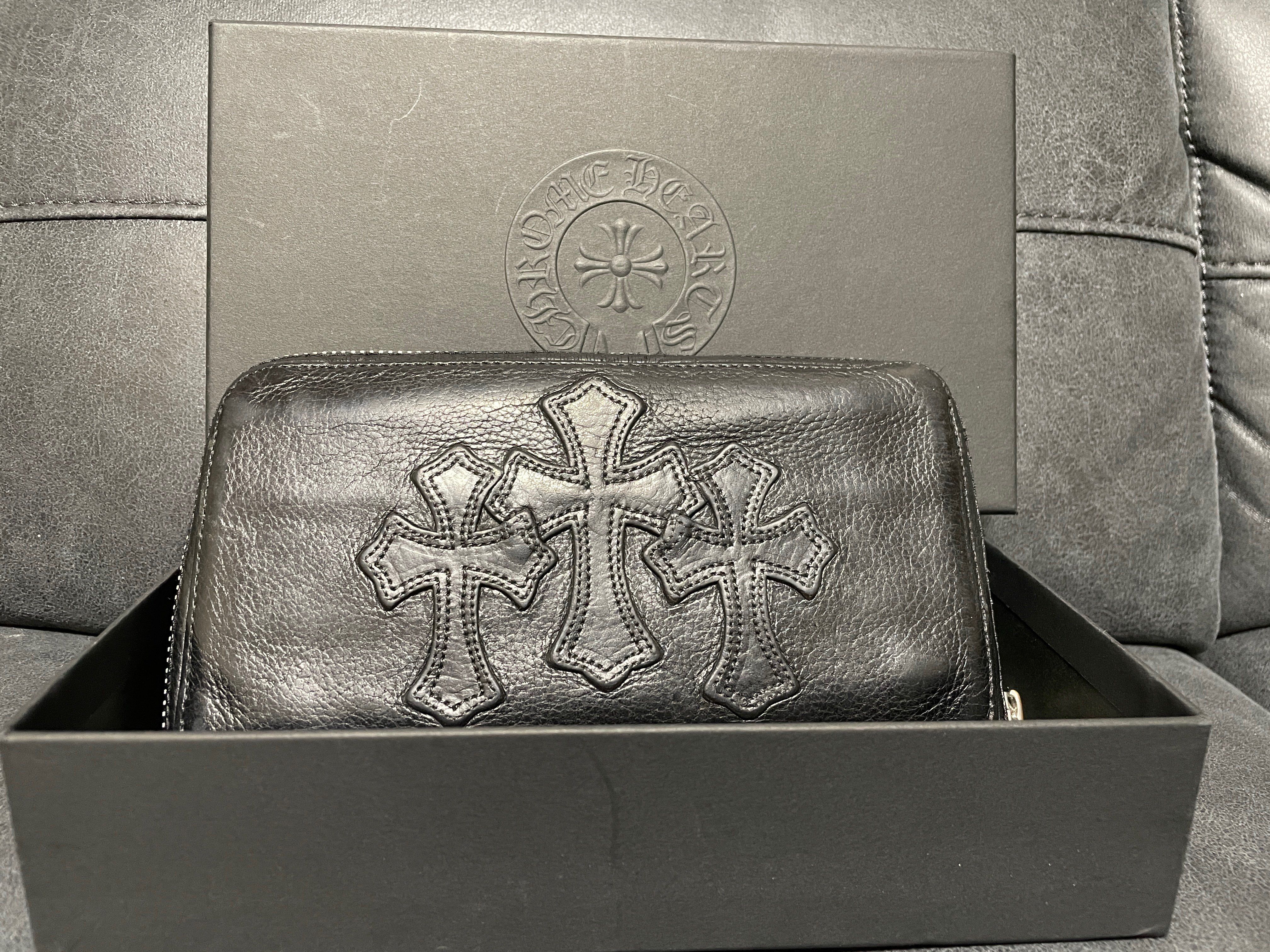 Chrome Hearts REC F Heavy Leather Zip Wallet / 3 Cemetary Cross "Black"