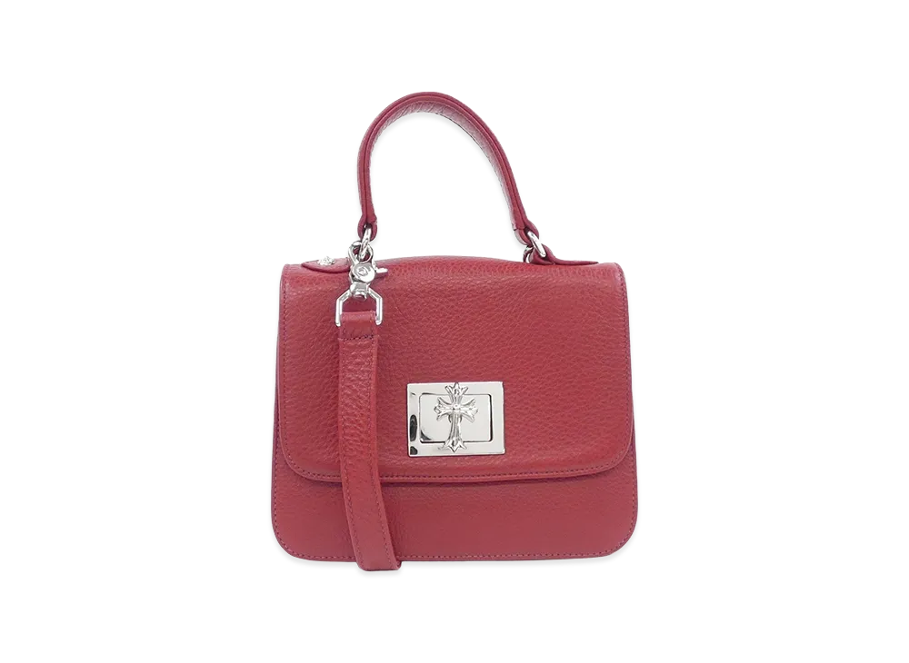 Chrome Hearts 2 Section SM CH Cross 2way Clip Shoulder Leather Hand Bag "Red"