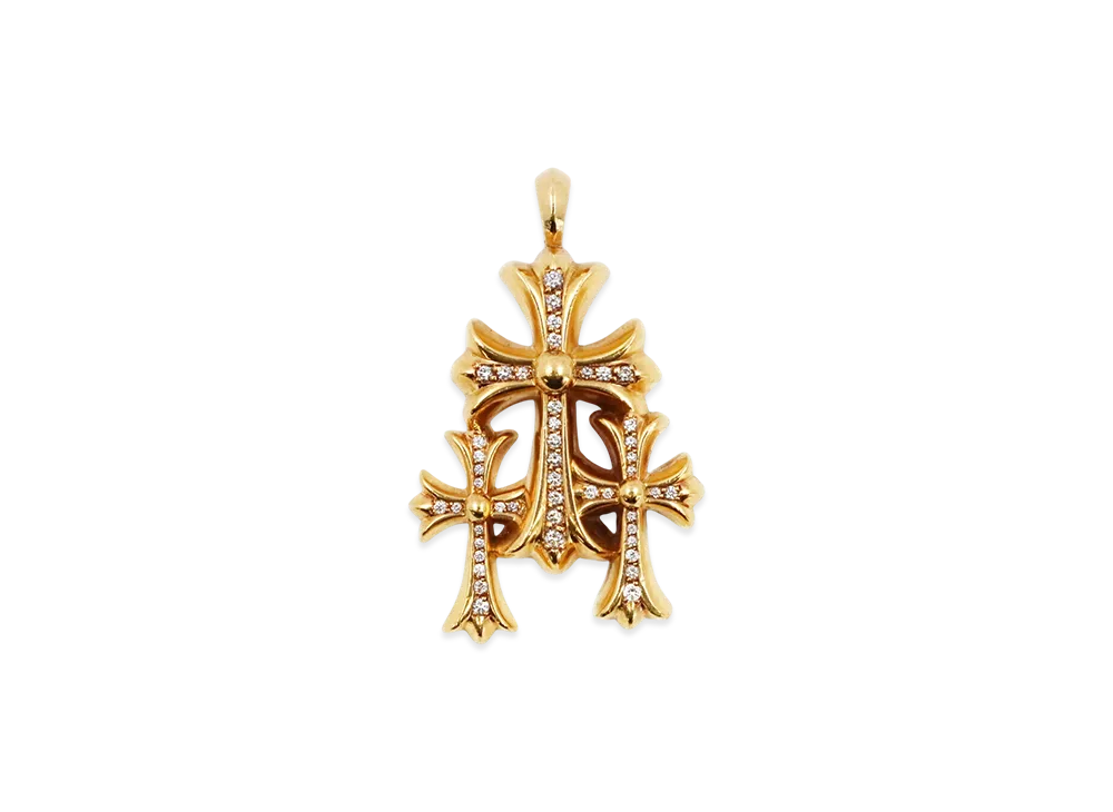 Chrome Hearts 22K 3 CH Cross Small Pave Diamond Pendant "Gold"