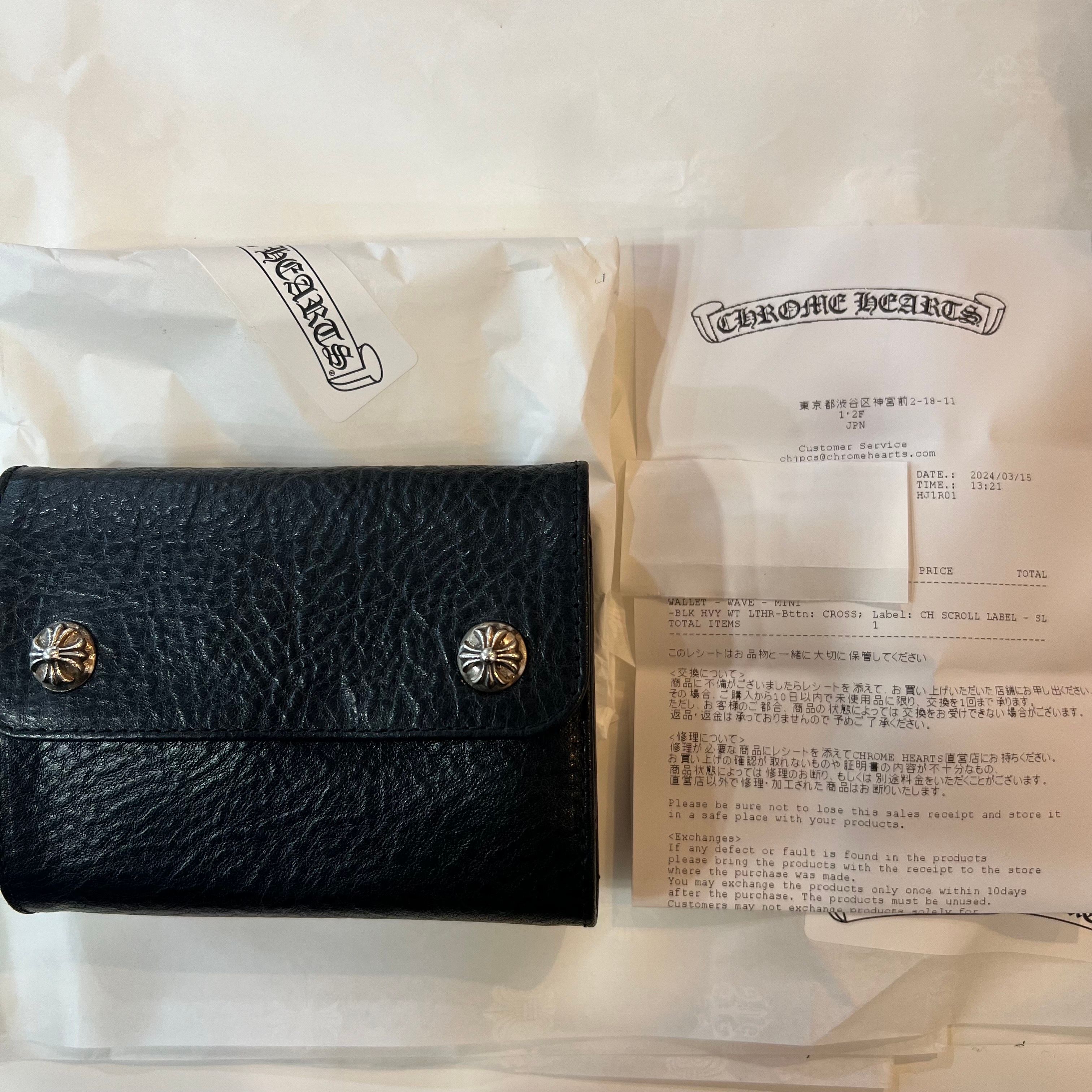 Chrome Hearts Wave Mini Cross Ball Button Leather Wallet "Black/Silver"