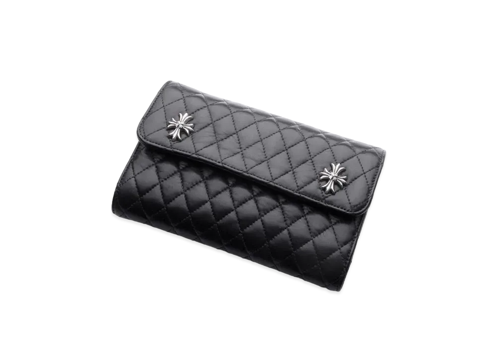 Chrome Hearts Wave Wallet # 4 Quinted Leather / Ch Plus Button "Black"