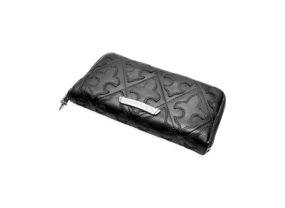 Chrome Hearts REC F Zip Cemetary Cross Quilted Destroy Leather Wallet "Black"