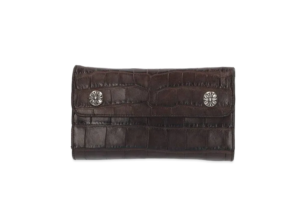 Chrome Hearts Wave Alligator Cross Button Leather Wallet "Brown"