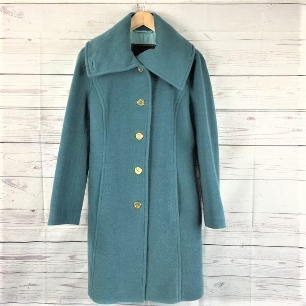 コーチ/COACH★ウール&モヘヤ/高級ステンカラーコート/アウター【XS/緑/オリーブ】金ボタン/腰ベルト◆BA220-A