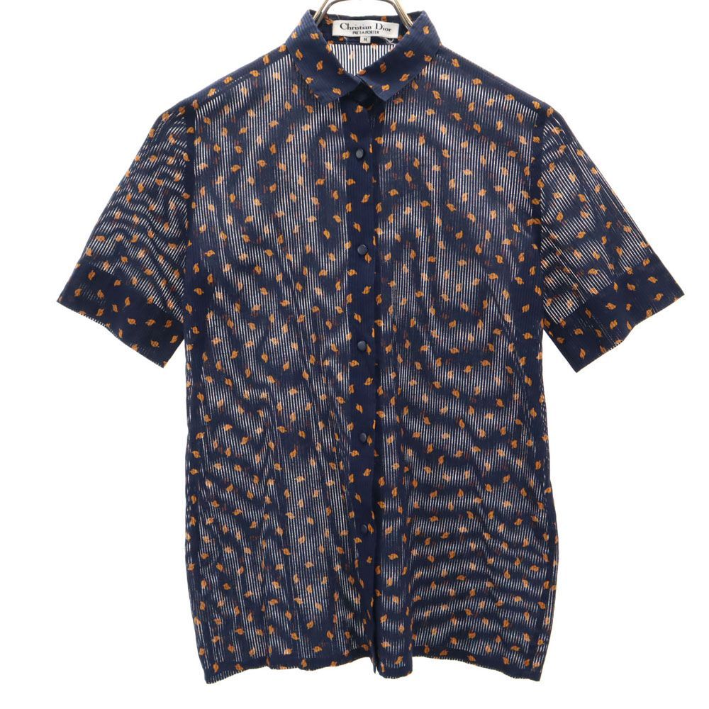 Christian Dior クリスチャンディオール 90s オールド 総柄 半袖 コットンシャツ M ネイビー系