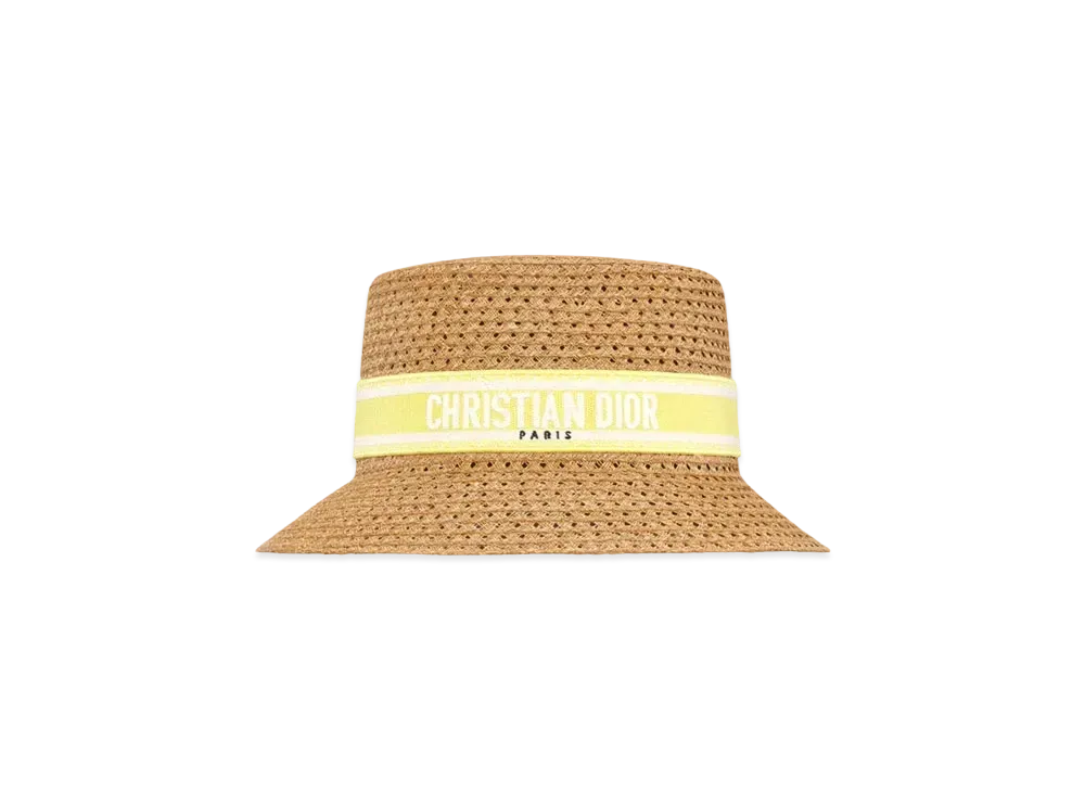 Dior Dioriviera D-Bobby Small Brim Hat Straw with Embroidered Band"Lemon Yellow"