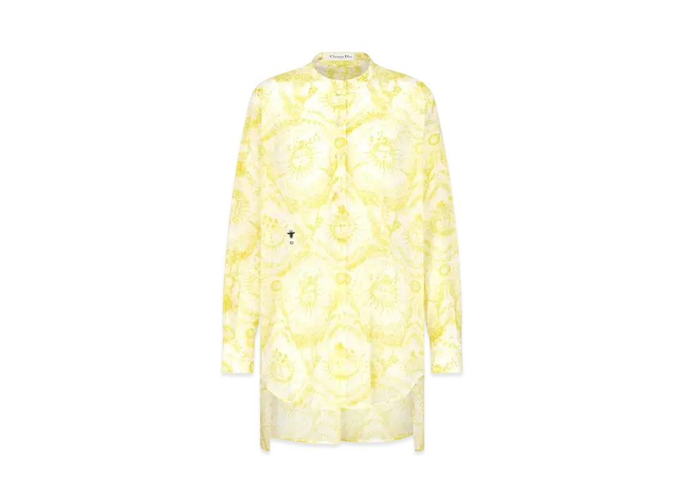 Dior Dioriviera Long Blouse Cotton Muslin with Toile de Jouy Soleil Motif "White/Lemon Yellow"