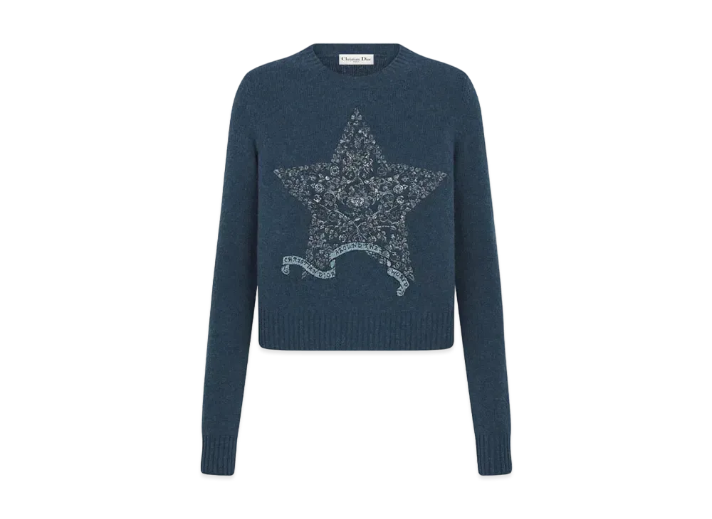 Dior Embroidered Sweater Cashmere Knit with Multicolor Dior Around the World Motif "Blue"
