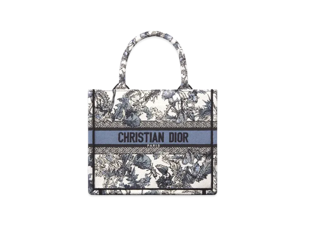 Dior Small Dior Book Tote Embroidery with Dior Chardons Motif (26.5 x 22 x 14cm) "White/Denim Blue"