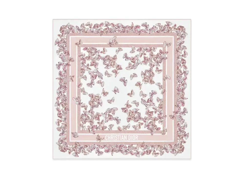 Dior Camo Papillon 90 Square Scarf Silk Twill "White/Pale Pink"