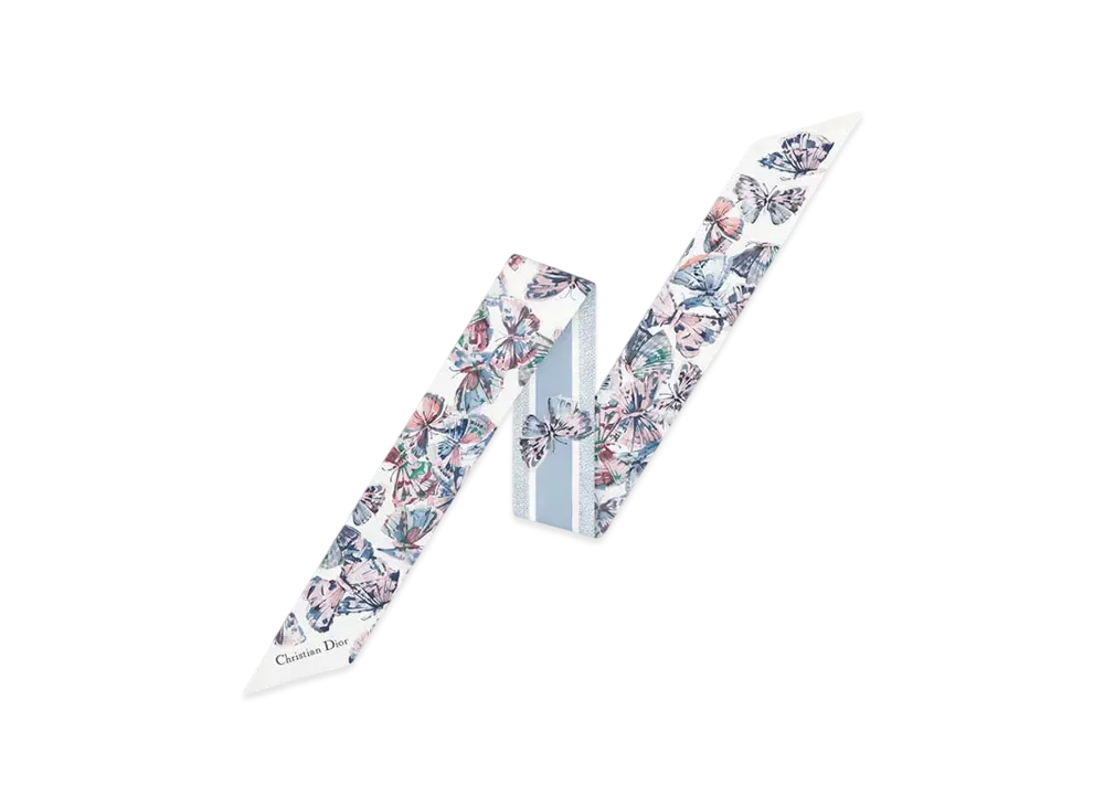 Dior Camo Papillon Mitzah Scarf Silk Jacquard "White/Sky Blue"