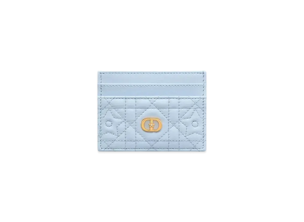 Dior Caro Freesia Card Holder Cannage Lambskin with Star Motif "Sky Blue"