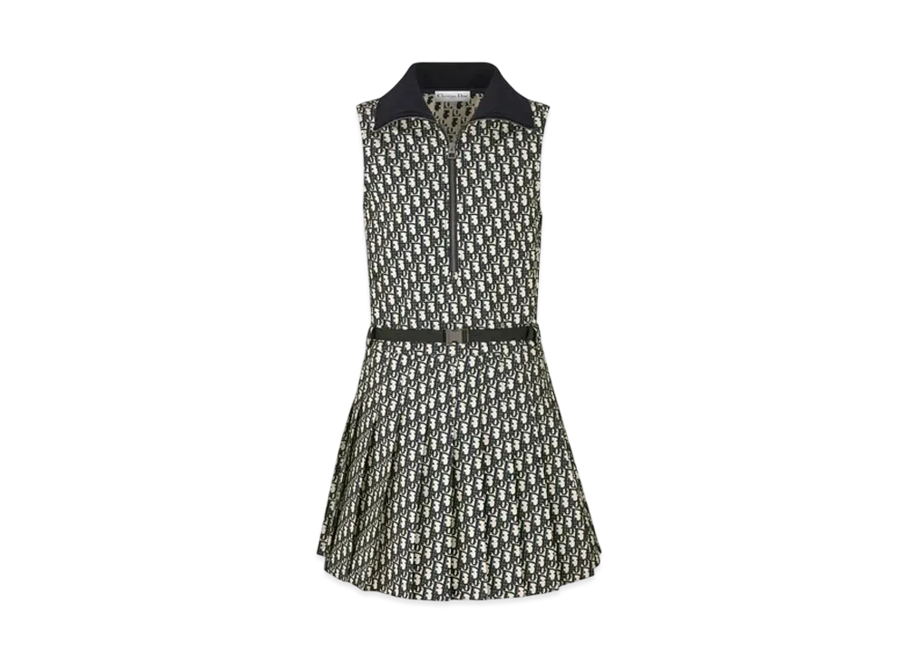 Dior Pleated Short Dress Technical Taffeta Jacquard with Dior Oblique Motif "Blue/Ecru"