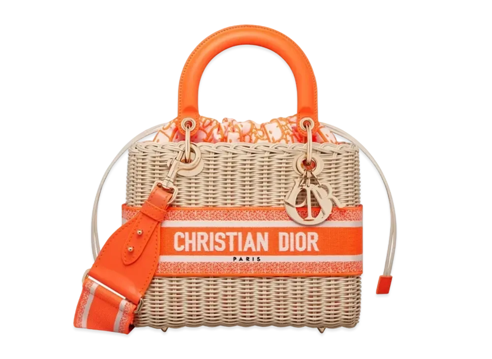 Dior Medium Lady Bag Natural Wicker Dior Oblique Jacquard "Fluorescent Orange"
